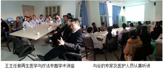 2012年11月28日,應(yīng)該院外一、外二病區(qū)梅禮強(qiáng)主任、徐偉主任的邀請(qǐng),當(dāng)日下午3點(diǎn),中國(guó)中西醫(yī)結(jié)合學(xué)會(huì)燒傷專(zhuān)業(yè)委員會(huì)常務(wù)兼秘書(shū)、《中國(guó)燒傷創(chuàng)瘍雜志》副總編輯、北京美寶燒傷創(chuàng)瘍研究所副所長(zhǎng)、第二臨床研究部主任王洪生研究員來(lái)到該院,為二兩個(gè)科室的醫(yī)護(hù)人員做了一場(chǎng)生動(dòng)的學(xué)術(shù)報(bào)告。王洪生研究員先以“再生醫(yī)療技術(shù)在增生性瘢痕防治新進(jìn)展”為題先做一個(gè)精彩的演講,緊接著應(yīng)科室徐偉主任的邀請(qǐng),又做了“再生醫(yī)療技術(shù)在糖尿病足、褥瘡、骨外露、鋼板外露、手術(shù)切口感染、難愈合創(chuàng)面及大面積深度燒傷的臨床規(guī)范化應(yīng)用”精彩演講,會(huì)場(chǎng)鴉雀無(wú)聲,在場(chǎng)的醫(yī)護(hù)人員們都為之震撼,會(huì)議一直持續(xù)到晚上6點(diǎn)多。會(huì)議結(jié)束后,醫(yī)護(hù)人員都不舍得離場(chǎng),提出了很多臨床中遇到的問(wèn)題,王洪生主任都耐心的解答。