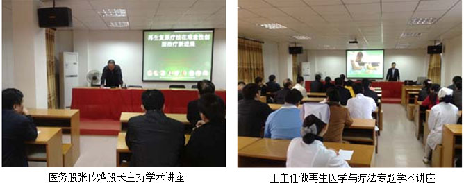 醫(yī)務(wù)股張傳燁股長(zhǎng)提前等候在大門口迎接王主任的到來(lái),會(huì)議室坐滿了醫(yī)院各相關(guān)科室的30多名醫(yī)務(wù)人員,在學(xué)術(shù)講座開(kāi)始前,王主任首先向與會(huì)專家和醫(yī)護(hù)人員通報(bào)了我國(guó)著名生命科學(xué)家、醫(yī)學(xué)家徐榮祥教授在美國(guó)起訴諾獎(jiǎng)委的相關(guān)信息,然后以圖文并茂和詳實(shí)的圖像資料把再生療法在臨床各個(gè)方面的規(guī)范化應(yīng)用作了深入淺出的演示講解,課后還就醫(yī)生們提出的臨床治療中各類問(wèn)題一一作詳細(xì)的解答和指導(dǎo)。會(huì)后,彭俊生院長(zhǎng)親自到來(lái)感謝并希望今后能得到更好的技術(shù)支持。