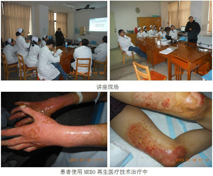 劉莉護士長熱情接待了金教授,下午三點半在該院住院部十樓辦公室,再生醫(yī)療技術(shù)講座正式開始,科室十五位醫(yī)護人員們參加了此次講座。金黨軍教授通過電教片展示了燒傷皮膚原位再生醫(yī)療技術(shù)理論依據(jù),規(guī)范換藥細節(jié),暴露、半暴露和包扎療法的應(yīng)用。金教授還結(jié)合臨床病例圖片,針對不同深度的燒傷創(chuàng)面及各類難愈性創(chuàng)傷、潰瘍創(chuàng)面的規(guī)范化處理方法與技巧、注意事項及燒傷疤痕康復(fù)治療等進行了細致講解。