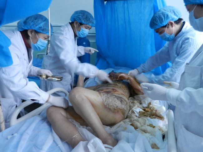 當晚,胡教授不顧一路上的旅途勞頓,就即刻趕往醫(yī)院,巡視最近收治的一位重癥燒傷患者,并與臨床一線的醫(yī)護人員親切交談。在初步了解了患者的救治情況之后,他首先肯定了燒傷科現(xiàn)階段的治療方案以及已經采取的一系列及時、有效的搶救措施,接著就大面積燒傷患者的休克期和感染期治療提出了一些針對性建議。