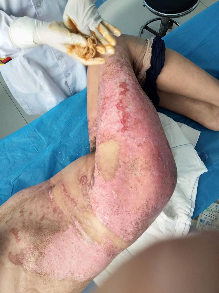 2022年10月31日-11月1日,中國中西醫(yī)結(jié)合學(xué)會燒傷專業(yè)委員會醫(yī)療部張強應(yīng)石首市人民醫(yī)院外二科李主任邀請,用再生醫(yī)療技術(shù)會診一例燒傷病人,患者經(jīng)過兩次削痂清創(chuàng)換藥,創(chuàng)面情況良好,恢復(fù)狀況得到了院方科室的認(rèn)可,患者及家屬對張強教授的會診表示感謝!