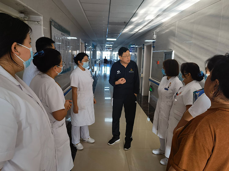 9月23日,《中國燒傷創(chuàng)瘍雜志》常務(wù)編委、燒傷創(chuàng)瘍再生醫(yī)療技術(shù)臨床專家趙瑞慶來到云岡區(qū)再生醫(yī)療基地醫(yī)院外科病區(qū),進(jìn)行一期創(chuàng)面修復(fù)教學(xué)查房,針對21例慢創(chuàng)住院患者檢視指導(dǎo)。在討論環(huán)節(jié)重點(diǎn)對9例患者(糖尿病足4例,壓瘡2例,燒傷1例,截肢殘端創(chuàng)面1例,足背皮膚壞死創(chuàng)面l例)制定了具體詳細(xì)的治療措施,最后趙教授強(qiáng)調(diào)指出,在今后的醫(yī)療工作中要發(fā)揮好基地醫(yī)院的引領(lǐng)輔射作用,為當(dāng)?shù)鼐用窀玫胤?wù)。