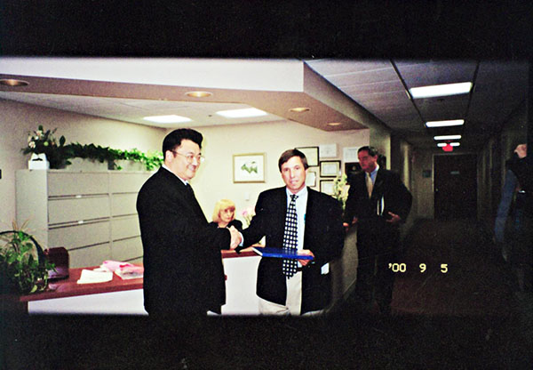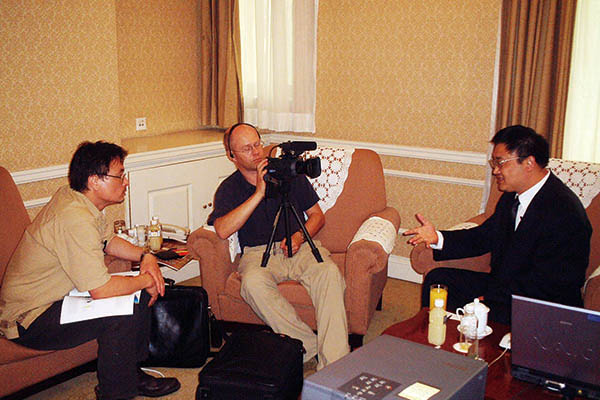 圖3  2000年10月與英國牛津大學(xué)Cherry主席交流干細胞研究