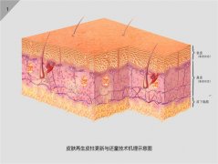 現(xiàn)在流行的一些使表皮年輕的美容技術(shù)是什么?就是把表皮變薄。人衰老以后皮膚表皮的角化層就比較厚,這是因?yàn)槿梭w衰老后,表皮的基底細(xì)胞也會(huì)跟著衰老,表皮新陳代謝減慢導(dǎo)致的。在這里,大家要有個(gè)概念,90歲的老人皮膚表皮的基底細(xì)胞的活力只有年輕時(shí)候的10%,它的活力和年齡正好成反比;而我們能把90歲的老人皮膚基底細(xì)胞10%的活力提高到80%。這是一個(gè)反數(shù),也就是說(shuō),靠表皮基底細(xì)胞的活力,使表皮更新速度加快,產(chǎn)生新的表皮,這是我們的第一個(gè)機(jī)理,表皮年輕的機(jī)理。我們?cè)瓉?lái)講過(guò)的,一個(gè)疤痕的上皮細(xì)胞都能讓你變成表皮干細(xì)胞化,然后能夠長(zhǎng)出皮膚表層,更何況不是疤痕的皮膚,而是一個(gè)正常衰老的皮膚,就更可以更新表皮。