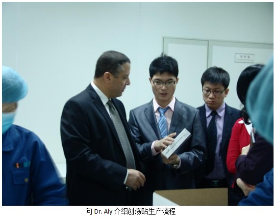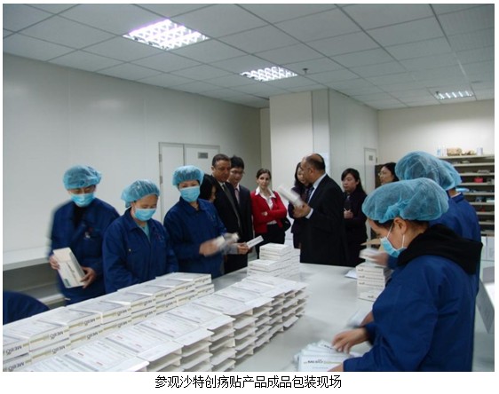 之后Dr.Ayman一行在商總和孫總的陪同下,一同參觀了新的廠房設(shè)備,并查看目前正在做最后包裝程序的發(fā)往沙特的創(chuàng)瘍貼產(chǎn)品。Dr.Ayman信心滿滿地說:“未來我們將勢(shì)必打造美寶品牌的多產(chǎn)品體系,將快速大力拓展醫(yī)療器械類產(chǎn)品在中東、非洲、南美洲的深入合作和市場(chǎng)營銷,努力將美寶創(chuàng)瘍貼、美寶疤痕軟膏打造成為第二、第三個(gè)濕潤燒傷膏!”