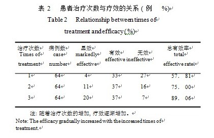 在采用超脈沖 CO2 點(diǎn)陣激光治療基礎(chǔ)上, 應(yīng)用濕潤燒傷膏和紅霉素眼膏治療的兩組總體有效率的差異無統(tǒng)計(jì)學(xué)意義 ( P = 0. 688 > 0. 05 ) , 兩組的療效比較也無顯著性差異。 3 次治療后兩組患者療效比較見表 1, 治療次數(shù)與療效的關(guān)系見表 2。
