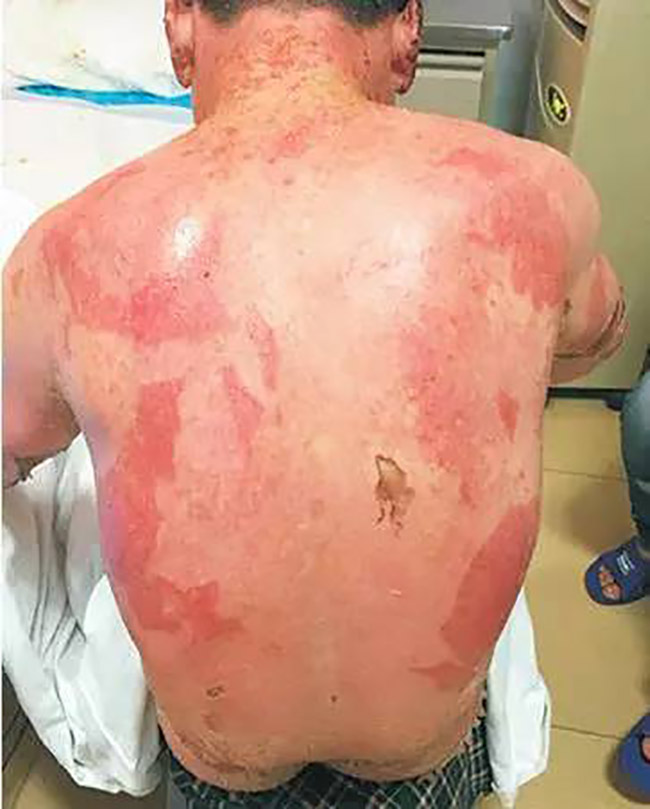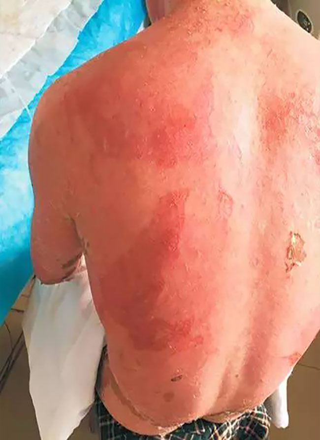這張照片看起來(lái)觸目驚心,這就是一個(gè)藥物嚴(yán)重過(guò)敏的男性患者,年齡38歲。于2016年 8月26起口服卡馬西平抗癲癇治療,服藥后出現(xiàn)頭皮瘙癢,未重視;9月5日患者出現(xiàn)周身皮膚瘙癢,皮膚發(fā)紅,未進(jìn)行治療,期間繼續(xù)服用卡馬西平;9月6日,上述癥狀加重,發(fā)紅處出現(xiàn)水皰;9月8日19:30患者入院治療。以“藥物過(guò)敏致全身大面積剝脫性皮炎”收入重癥監(jiān)護(hù)室,該患者皮疹多種形態(tài),可見(jiàn)斑疹、斑丘疹、斑片,自覺(jué)瘙癢,可見(jiàn)水皰及皮膚破潰,口腔黏膜破潰。最初他只是以為是蕁麻疹卻未想到,是他治療癲癇的口服藥造成的藥物性過(guò)敏,而且來(lái)勢(shì)洶洶。