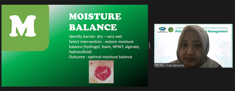 首位講者是來自印尼Pertamina中央醫(yī)院的整形重建外科醫(yī)生Dr. Ayu Diah Kesuma,她帶來了題為《創(chuàng)面評估》的演講。她在演講中討論了創(chuàng)面評估工具、疼痛評估、創(chuàng)面感染評估等,深入地講解了治療過程中動態(tài)評估的相關(guān)內(nèi)容。
