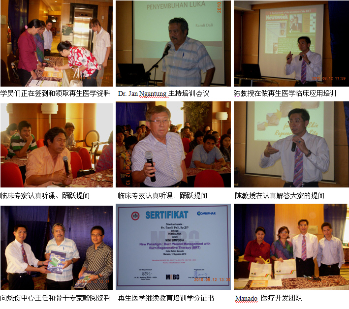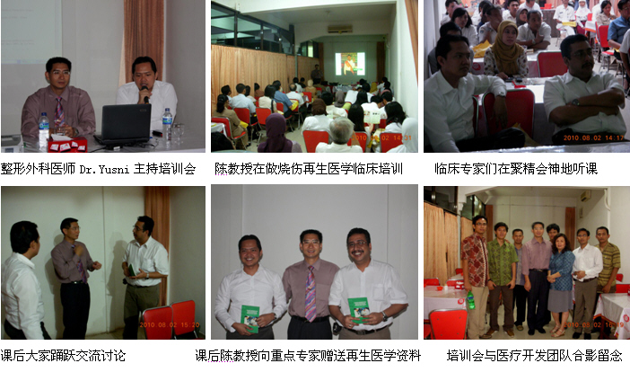 同時(shí),經(jīng)過精心策劃和安排,2010年8月1日,剛剛結(jié)束馬來西亞醫(yī)療開發(fā)與維護(hù)工作的中國(guó)燒傷創(chuàng)瘍科技中心臨床部主任、北京榮祥再生醫(yī)學(xué)研究所副所長(zhǎng)、北京中西醫(yī)結(jié)合學(xué)會(huì)燒傷專業(yè)委員會(huì)副主任委員陳永翀教授顧不上休息,便馬不停蹄地趕往印度尼西亞(印尼),在Combiphar 負(fù)責(zé)醫(yī)療開發(fā)的Mr. Kirastha 的組織、安排和全程陪同下,展開了印尼2010年的第二輪醫(yī)療開發(fā)工作。在這次的醫(yī)療開發(fā)工作中,能夠很好地和各級(jí)醫(yī)師學(xué)會(huì)或醫(yī)院緊密合作,有效地提高了培訓(xùn)班的組織能力、影響力、學(xué)術(shù)水平等,由于有繼教學(xué)分而且培訓(xùn)內(nèi)容新穎、實(shí)用,而很受臨床醫(yī)護(hù)人員的歡迎,為醫(yī)療開發(fā)摸索出了一條很好的路子。在這次的醫(yī)療開發(fā)過程中,通過這種模式成功參加了印尼全國(guó)的燒傷整形外科大會(huì),舉辦了省級(jí)培訓(xùn)班2期,市級(jí)培訓(xùn)班3期,院內(nèi)培訓(xùn)班2期,重點(diǎn)專家學(xué)術(shù)交流5次,培訓(xùn)了燒傷、整形、普通外科、皮膚科、骨科、婦產(chǎn)科醫(yī)師和護(hù)士690多名,培訓(xùn)市場(chǎng)醫(yī)療開發(fā)人員19名,成功開發(fā)了不少于5家大型政府教學(xué)醫(yī)院,會(huì)診、指導(dǎo)1例大面積特重度燒傷和另外5例創(chuàng)瘍患者的治療。由于開發(fā)的路子對(duì),達(dá)到了高效率的開發(fā)效果。下面以簡(jiǎn)短的圖文方式與大家分享成功的經(jīng)驗(yàn)。