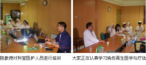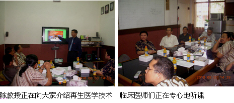 2、8月3日上午,陳教授和Mr. Kirastha剛從Probolinggo市趕回到雅加達(dá)市,顧不上休息便直接奔赴Fatmawati hospital Jakarta醫(yī)院(政府醫(yī)院,400病床,有燒傷中心)的外科教研室,給該院的外科醫(yī)師、整形燒傷醫(yī)師介紹燒傷再生醫(yī)學(xué)與療法,大家聽得很認(rèn)真,對(duì)再生醫(yī)學(xué)技術(shù)非常感興趣,達(dá)到了較好的培訓(xùn)效果,為再生醫(yī)學(xué)技術(shù)引進(jìn)該院奠定了良好的基礎(chǔ)。