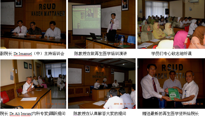 7、8月13日上午9時(shí),由醫(yī)師學(xué)會(huì)主辦的Jambi市級(jí)燒傷再生醫(yī)學(xué)臨床培訓(xùn)班(省級(jí)繼續(xù)教育項(xiàng)目,學(xué)分6分)在Raden Mattaher hospital的學(xué)術(shù)報(bào)告廳里舉辦,來自全是主要的4家政府醫(yī)院和其它10多家私營(yíng)醫(yī)院的80多名臨床醫(yī)師、護(hù)士參加了這次培訓(xùn)會(huì)。培訓(xùn)會(huì)由Raden Mattaher hospital副院長(zhǎng)Dr.Imanuel主持,醫(yī)院大外科主任Dr. Aziz介紹了應(yīng)用MEBO治療褥瘡的臨床經(jīng)驗(yàn),陳教授則應(yīng)邀作了“燒傷再生醫(yī)學(xué)與療法在燒傷、創(chuàng)瘍疾病治療的臨床規(guī)范應(yīng)用”的培訓(xùn)演講,很受大家的歡迎,達(dá)到了較理想的培訓(xùn)效果。