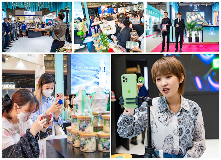 美寶展臺現(xiàn)場活動不斷,精彩紛呈,人流匯聚。不僅ALL IN男團成員、華語樂壇新生代實力派歌手傾情演唱,將氣氛拉到高潮;更有抖音紅人應邀來到,和大家現(xiàn)場分享護膚秘籍,并在抖音賬號直播間送出多重福利,引爆流量。