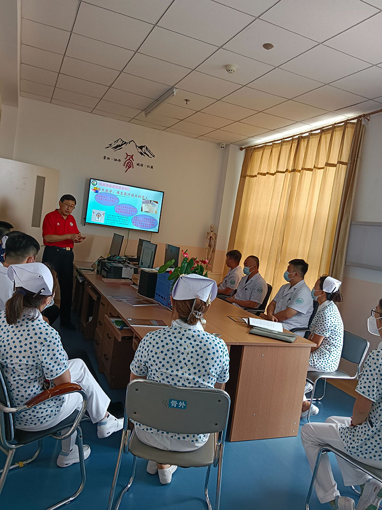 7月18日,中國中醫(yī)藥高等教育學(xué)會臨床教育研究會肛腸分會常務(wù)理事、北京中西醫(yī)結(jié)合學(xué)會燒傷專業(yè)委員會副主任委員、北京中醫(yī)藥學(xué)會肛腸專業(yè)委員會委員、《中國燒傷創(chuàng)瘍雜志》常務(wù)編委張勇,來到長白山中心醫(yī)院,與骨科、普外科開展再生醫(yī)療技術(shù)學(xué)術(shù)會議,參會人員20人,張勇主任精彩的講解得到大家一致好評。