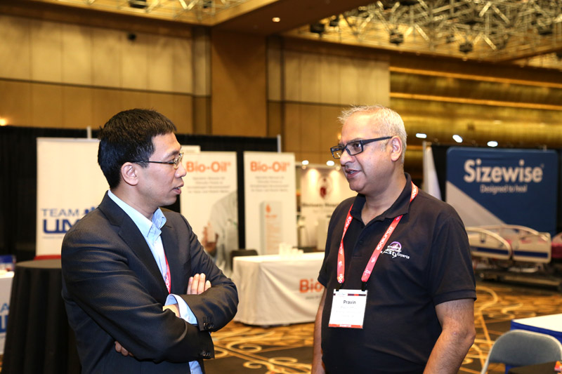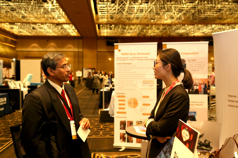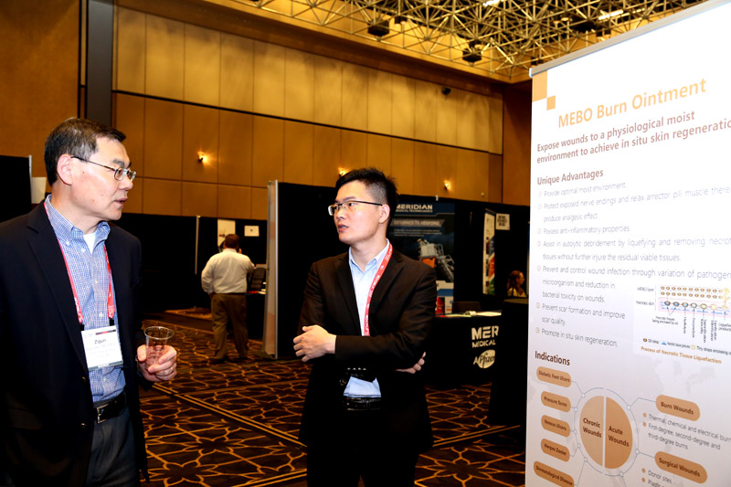 會議期間,許多美寶的老朋友們到訪展臺,詢問美寶近況,關(guān)心燒傷再生醫(yī)學世界范圍內(nèi)的發(fā)展。其中來自美國俄克拉何馬州(Oklahoma)的Dr. Paul Silverstein是美寶近30年來的老朋友(1972年間參與美國越戰(zhàn)士兵治療并獲得美國Meritorious Service Medal獎章),如今80多歲高齡的他依然記得徐榮祥大夫在美國的演講,記得2003年John A. Boswick論壇上與美寶的深切交流(注:John A. Boswick Symposium是美國燒傷界最知名的論壇之一,1977年開始每年2月份在美國夏威夷舉行),深切希望美寶技術(shù)和產(chǎn)品能夠在美國盡快得到應用。同時,來自中國、印度、卡塔爾、土耳其、約旦、印尼及馬來西亞等國、應用美寶濕潤燒傷膏多年的醫(yī)療專家也到訪了展臺,紛紛詢問美寶在美國的注冊進展。