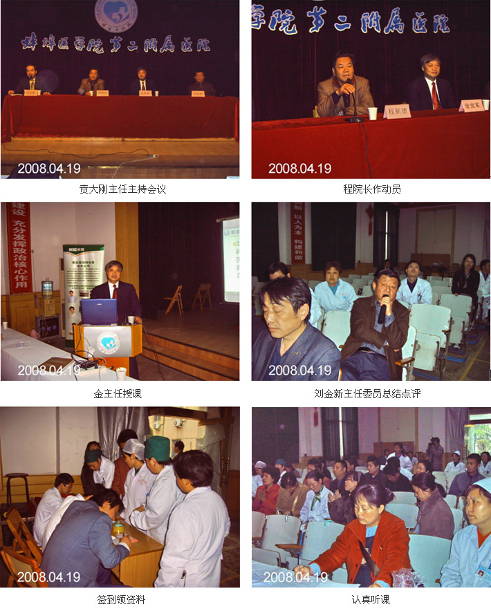 2008年4月19日蚌埠市暴雨,學(xué)員仍冒雨參加上午由中國中西醫(yī)結(jié)合學(xué)會燒傷專業(yè)委員會主辦,蚌埠市醫(yī)附二院承辦的《燒傷皮膚再生醫(yī)療技術(shù)診治護理培訓(xùn)班》在醫(yī)附二院會議廳隆重召開。出席這次培訓(xùn)班的有醫(yī)學(xué)會外科分會主任委員劉金新、醫(yī)院領(lǐng)導(dǎo)程新德院長。外科主任賁大剛主持會議,程院長首先對再生醫(yī)學(xué)技術(shù)療效顯著、應(yīng)用簡單方便,非常適合基層醫(yī)務(wù)人員的特點給與了充分的肯定并作簡要動員。同時勉勵廣大學(xué)員珍惜這次學(xué)習(xí)機會,通過這次會議開闊醫(yī)學(xué)發(fā)展視野、了解醫(yī)學(xué)發(fā)展動態(tài)、掌握實用醫(yī)療技術(shù)。來自全市基層醫(yī)院、鄉(xiāng)鎮(zhèn)衛(wèi)生院、臨床一線醫(yī)護人員共150多人。