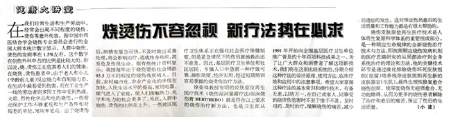 徐榮祥教授發(fā)明的皮膚原位再生醫(yī)療技術(shù)(燒傷濕潤暴露療法/濕潤燒傷膏MEBT/MEBO)就是符合以上要求的燒傷治療新方法,也是衛(wèi)生部從1991年開始向全國基層醫(yī)療衛(wèi)生單位推廣普及的十年百項(xiàng)科技成果之一。為了讓廣大群眾和消費(fèi)者了解這項(xiàng)新技術(shù),我們將在這里比較系統(tǒng)的,分期介紹這種療法的設(shè)計(jì)原理、使用方法、臨床療效和應(yīng)用中的注意事項(xiàng)。希望大家掌握這種療法的基本常識和操作技術(shù),有備無患,以防萬一,在自己或家人、同事受到燒燙傷危害時(shí)不至于措手不及,及時(shí)用藥、及時(shí)治療,緩解燒傷的痛苦,減少后遺癥的發(fā)生。這對保證傷員愈后的生活質(zhì)量和工作能力都是有很大幫助的。