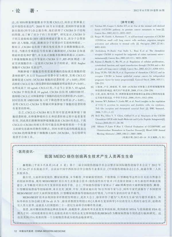 中國(guó)當(dāng)代醫(yī)藥雜志:我國(guó)MEBO燒傷創(chuàng)瘍?cè)偕夹g(shù)產(chǎn)生人類(lèi)再生生命