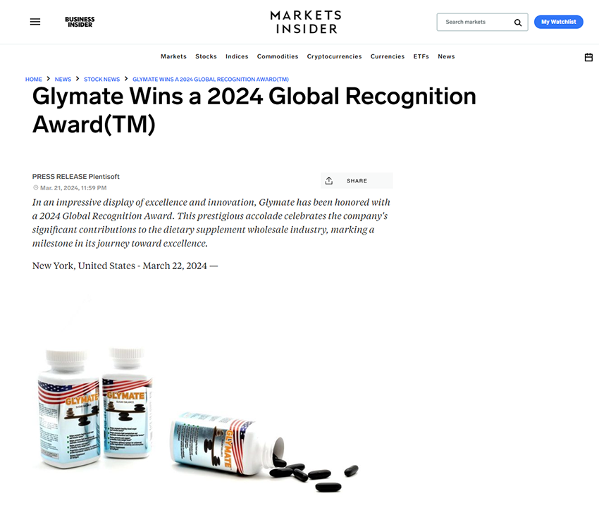 全球認可獎™的發(fā)言人Alex Sterling在頒獎詞中寫道,“Glymate贏得2024年全球認可獎,彰顯了該公司在膳食補充劑行業(yè)的領導力和創(chuàng)新性。他們對品質(zhì)、客戶滿意度和可持續(xù)性的承諾,為行業(yè)的其他公司樹立了高標準。我們祝賀Glymate獲得這一當之無愧的認可,并期待其持續(xù)的成功。”