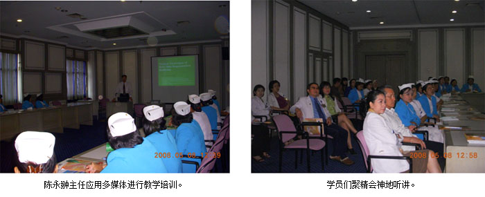 二、2008年5月8日,在印尼首都雅加達(dá)市RS Husada Hospital對(duì)全體外科醫(yī)護(hù)人員進(jìn)行燒傷創(chuàng)瘍皮膚再生技術(shù)培訓(xùn)。培訓(xùn)活動(dòng)由大外科主任Dr. Lie A. Dharmawan主持,參加人員有外科系統(tǒng)的醫(yī)護(hù)人員和部分其他科室的醫(yī)師約45人。