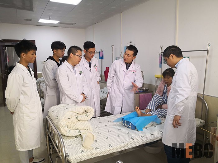 11月28日,應廣西百色市中醫(yī)醫(yī)院外一科吳顯興主任邀請,北京榮祥再生醫(yī)學研究所副所長、再生生命醫(yī)療技術委員會副主任委員、糖尿病足首席專家王洪生教授給外一科醫(yī)護人員帶來了原位再生技術在難愈性創(chuàng)面修復新進展的講座,并對一腳部碾壓傷肌腱外露患者和下肢動脈閉塞潰瘍患者進行了會診和現(xiàn)場換藥,讓科室醫(yī)護人員現(xiàn)場領略原位再生復原技術在難愈性創(chuàng)面的應用和實踐。