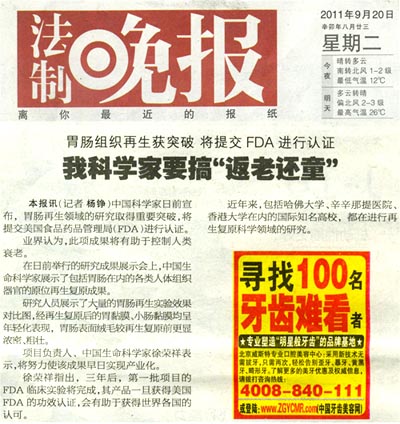 法制晚報(bào):我科學(xué)家要搞“返老還童”