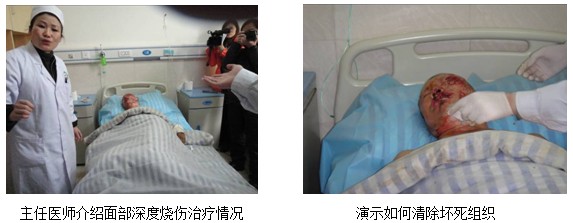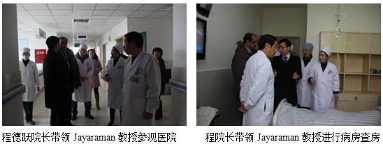 隨后,程院長帶領(lǐng)Jayaraman教授進行了病房查房活動。在查房的過程中,醫(yī)院主任醫(yī)師詳細介紹了應(yīng)用燒傷再生療法如何治療深度創(chuàng)面,包括開創(chuàng)引流、耕耘減張、壞死組織薄化、壞死組織液化排除等技術(shù),深深的吸引了Jayaraman教授。Jayaraman教授說:“我們的燒傷中心對于深二度以上的創(chuàng)面,一般都采用削痂植皮技術(shù),但今天我親眼看見了一種對壞死痂皮處理的一套新技術(shù)---創(chuàng)面無損傷、病人無痛苦、壞死組織自動液化排除, 好技術(shù)、好技術(shù)?!?/FONT>