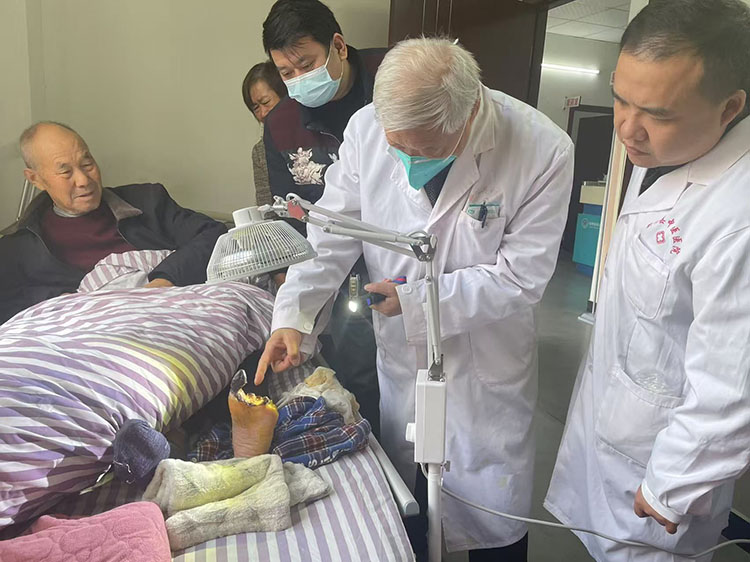 2024年11月27日,《中國燒傷創(chuàng)瘍雜志》編委、燒傷創(chuàng)瘍再生醫(yī)療技術臨床專家張強應?邀來到潛山市立醫(yī)院?,對該院收治的一名糖尿病足患者進行查看會診,進行創(chuàng)面清創(chuàng)、擴創(chuàng)以及對治療方案給予指導,受到醫(yī)患雙方一致好評!