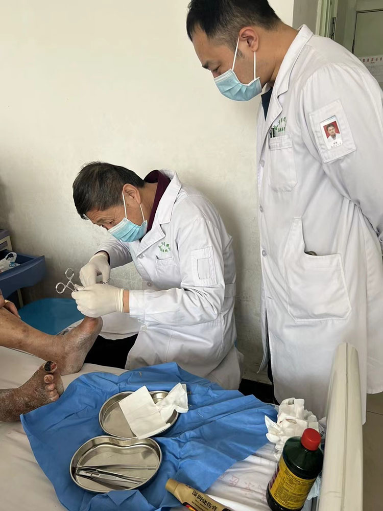 2023年3月28日,應(yīng)霍山縣縣醫(yī)院燒傷科張賢卿主任邀請,中國中西醫(yī)結(jié)合學(xué)會燒傷專業(yè)委員會醫(yī)療部張強主任會診了幾例慢創(chuàng)病人,變換藥邊講解換藥技巧及油紗制作,后在科室給醫(yī)護人授課培訓(xùn),8人參會,張主任的講解得到大家高度認可!再生醫(yī)療技術(shù)極大提高了縣級醫(yī)院創(chuàng)面病人的治療水平。