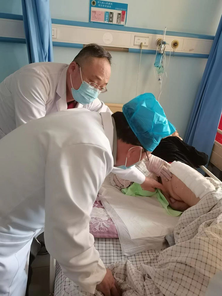 2023年3月27日,應(yīng)南陵縣縣醫(yī)院腦外科萬國武主任邀請,中國中西醫(yī)結(jié)合學(xué)會燒傷專業(yè)委員會醫(yī)療部張強主任會診了幾例難愈合創(chuàng)面患者,現(xiàn)場指導(dǎo)換藥并油紗制作,指導(dǎo)臨床全身用藥。后期還給主任及護士長分享了運用再生醫(yī)療技術(shù)治療創(chuàng)面的成功病例,講解換藥要點,得到大家一致高度認可!