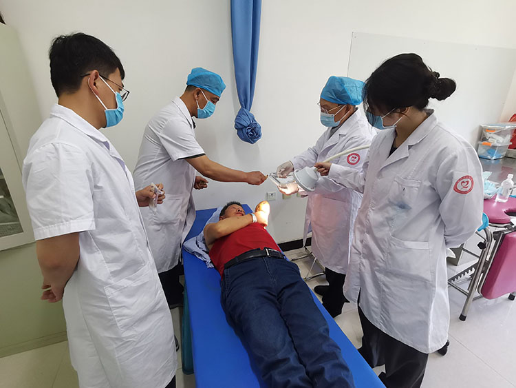 6月13日,《中國(guó)燒傷創(chuàng)瘍雜志》編委、燒傷創(chuàng)瘍?cè)偕t(yī)療技術(shù)臨床專(zhuān)家金黨軍,陳立新,林文忠來(lái)到撫州市東鄉(xiāng)區(qū)人民醫(yī)院外三科,會(huì)診了三例燒傷病人,其中一例中重度燒傷。通過(guò)金黨軍教授會(huì)診交流,宣導(dǎo)使院方醫(yī)師明確治療方案和原則,做到規(guī)范應(yīng)用再生醫(yī)療技術(shù)和規(guī)范換藥,講解了目前科室發(fā)展趨勢(shì)和二級(jí)雙向轉(zhuǎn)診的意義。通過(guò)交流,讓醫(yī)生護(hù)士對(duì)再生醫(yī)療技術(shù)治療燒燙傷更有信心,提高了醫(yī)療救治水平。