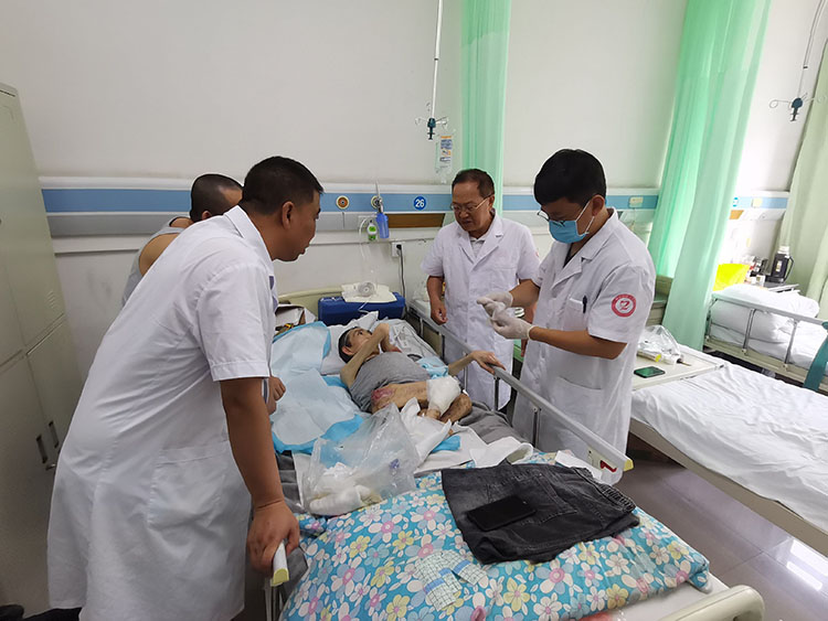2025年7月17日,《中國燒傷創(chuàng)瘍雜志》編委,燒傷創(chuàng)瘍再生醫(yī)療技術(shù)臨床專家張強主任,受邀到湖北宜昌秭歸縣人民醫(yī)院骨二科,與科室胡醫(yī)生,鄭醫(yī)生,韓護士長等共同會診一例閉塞性脈管炎造成的下肢潰瘍患者,一例水泥燒傷患者和一例內(nèi)固定后鋼板外露創(chuàng)面患者。張主任對創(chuàng)面清理技巧做了技術(shù)指導(dǎo),傳授多年臨床累積經(jīng)驗。會診后大家共同探討了后續(xù)治療可行性方案。此次會診受到患者和醫(yī)護人員一致好評!