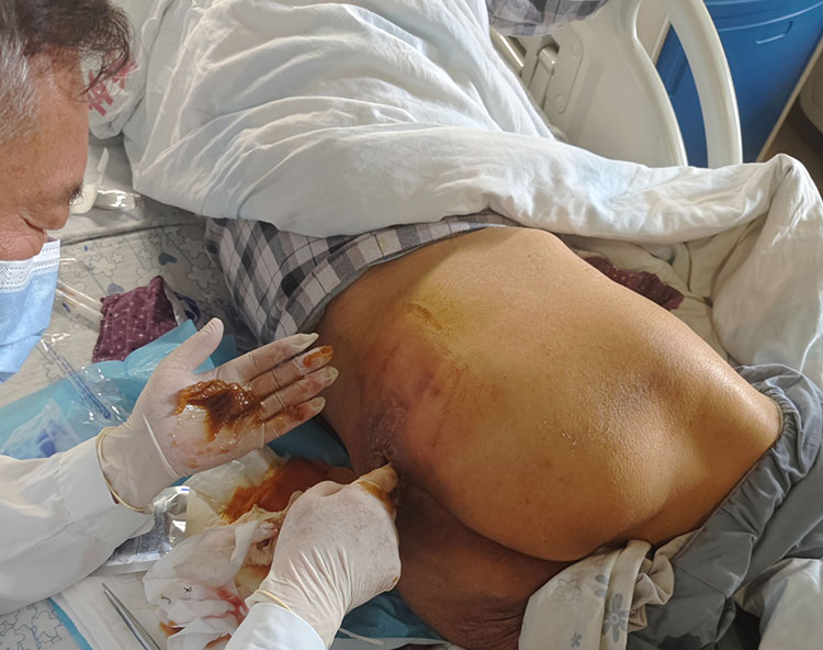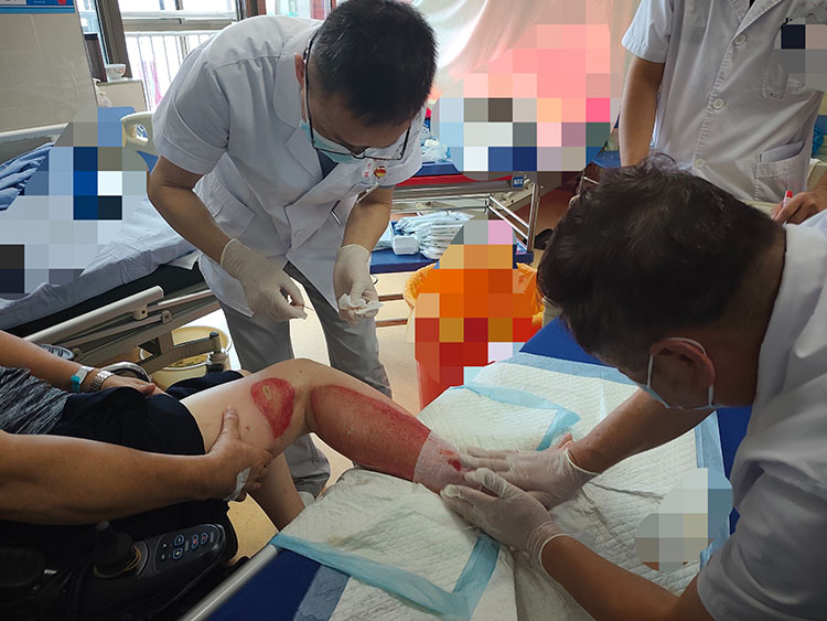 7月12日,應(yīng)山西國藥同煤二醫(yī)院邀請,《中國燒傷創(chuàng)瘍雜志》常務(wù)編委、燒傷創(chuàng)瘍再生醫(yī)療技術(shù)臨床專家趙瑞慶在該醫(yī)院對收治的19例慢創(chuàng)患者進行逐一查房檢查,針對其中8例患者親自示范處置演示,在院期間還為一名截癱礦工行骶尾部壓瘡皮簇種植術(shù)。