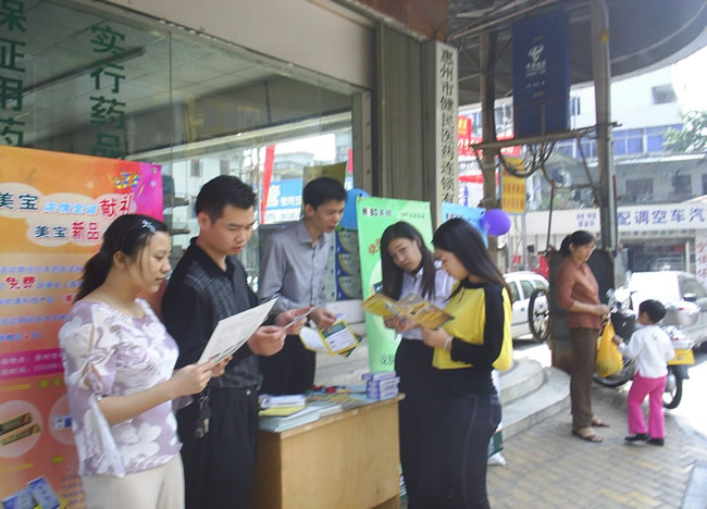 活動(dòng)中,在藥店外運(yùn)用美寶產(chǎn)品展架展示美寶產(chǎn)品,設(shè)立咨詢臺(tái)派發(fā)美寶系列產(chǎn)品宣傳資料,同時(shí),購(gòu)買(mǎi)美寶系列產(chǎn)品的消費(fèi)者可獲贈(zèng)由上海美寶生命科技有限公司研制的高科技產(chǎn)品“美寶降溫貼”,并可同時(shí)獲得咨詢服務(wù)。