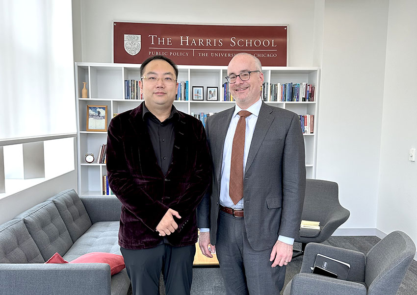 當(dāng)?shù)貢r(shí)間4月10日,美寶集團(tuán)董事局主席徐鵬應(yīng)邀訪問芝加哥大學(xué)。此次訪問,不僅是雙方長(zhǎng)期以來伙伴關(guān)系構(gòu)建的進(jìn)一步深入,更是對(duì)未來合作藍(lán)圖的深度描繪。徐鵬主席與芝加哥大學(xué)哈里斯公共政策學(xué)院院長(zhǎng)Ethan Bueno及副院長(zhǎng)Rena Dascal進(jìn)行了會(huì)面,共同探討了雙方合作的廣闊領(lǐng)域和進(jìn)一步發(fā)展的方向,特別是圍繞APEC區(qū)域?qū)W者和研究項(xiàng)目的深度合作。