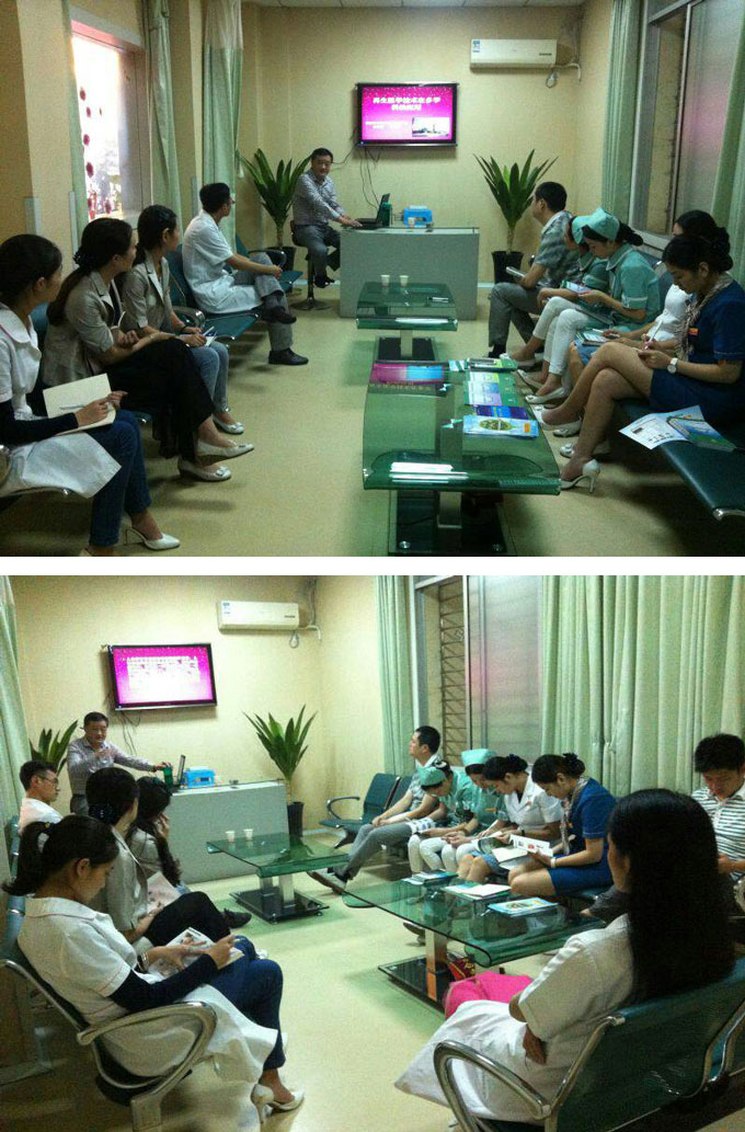 2014年8月28日在內(nèi)江市中醫(yī)院美容門診,付子俊主任為門診醫(yī)護(hù)人員舉辦了一次《中西醫(yī)結(jié)合治療難愈性創(chuàng)面新進(jìn)展學(xué)習(xí)班》課題講座。有三個(gè)科室的醫(yī)生和護(hù)士參加。培訓(xùn)由門診薛主任主持,付子俊主任給大家講解偏向整形美容微創(chuàng)愈合及瘢痕防治,因?yàn)榉浅G泻吓R床實(shí)際,尤其是瘢痕防治難題,是目前整形美容行業(yè)普遍性的治療難點(diǎn),付主任講解的用燒傷創(chuàng)瘍?cè)偕t(yī)學(xué)與療法實(shí)現(xiàn)瘢痕皮膚復(fù)原得到了大家的高度認(rèn)可。大家表示要好好學(xué)習(xí)并消化這次講課內(nèi)容,并在臨床中摸索應(yīng)用,以后還準(zhǔn)備要到雅安市人民醫(yī)院去參觀學(xué)習(xí),并請(qǐng)付主任以后多在臨床工作中給予支持。