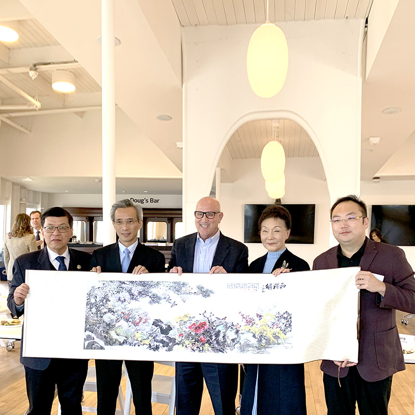 美東時間2023年2月21日,中國人民對外友好協(xié)會會長林松添率團訪問加州灣區(qū)委員會(Bay Area Council )位于舊金山市9號碼頭 Klamath 游輪上的總部。這是中美兩國民間交流因疫情隔絕三年之后首個到訪灣區(qū)委員會的中國團隊。