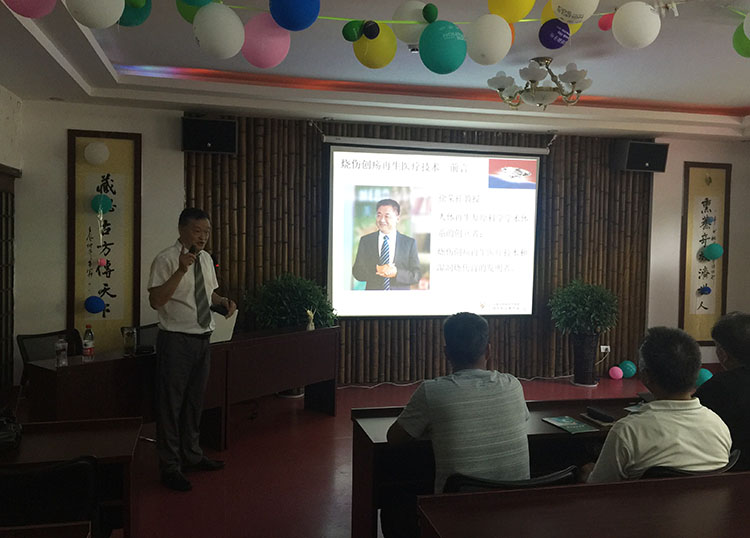 8月22日下午,享受國(guó)務(wù)院特殊津貼的再生醫(yī)療專家付子俊教授應(yīng)貴陽(yáng)市修文縣扎佐林場(chǎng)醫(yī)院及其養(yǎng)老中心的邀請(qǐng),到該院開(kāi)展“再生醫(yī)療在多學(xué)科的應(yīng)用”培訓(xùn),該院60多名醫(yī)護(hù)人員參加了此次培訓(xùn),該院院長(zhǎng)表示此次培訓(xùn)對(duì)提高該院及養(yǎng)老中心治療難愈性創(chuàng)面的治療方法有積極作用,效果一定會(huì)有大的提高。