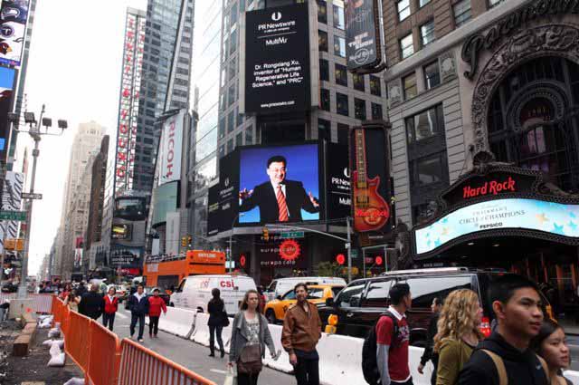 昨天,路透社第一時(shí)間發(fā)布了徐榮教授道出起訴諾貝爾獎(jiǎng)委員會(huì)原因的新聞,同時(shí)在紐約時(shí)代廣場(chǎng)的新聞大屏幕上刊出徐榮祥教授的另一幅照片,稱徐榮祥是人體再生復(fù)原科學(xué)和PRC細(xì)胞發(fā)明人。