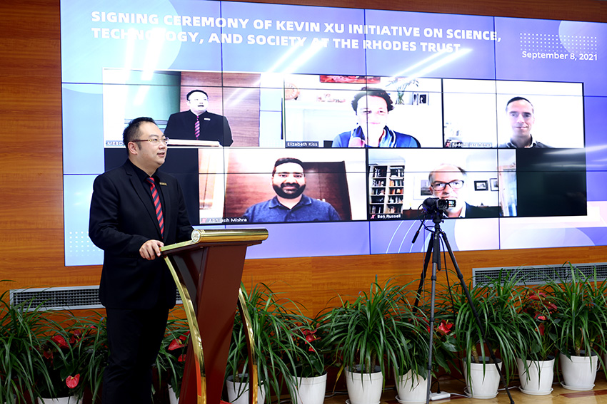 2021年9月8 日,牛津大學(xué)羅德學(xué)院“徐鵬智庫(kù)”科學(xué)、技術(shù)和社會(huì)發(fā)展倡議簽約儀式在線舉行。牛津大學(xué)羅德信托CEO、羅德學(xué)院院長(zhǎng)Elizabeth Kiss,羅德信托全球合作總監(jiān)Rodolfo Lara,公關(guān)部主任Ben Russell;芝加哥大學(xué)“徐鵬智庫(kù)”科學(xué)、技術(shù)和全球發(fā)展倡議主任Abhilash Mishra博士;美寶集團(tuán)董事局徐鵬、李俐,總裁楊智斌,副總裁陳寶琪、張倩、劉鋼等出席了此次簽約儀式。