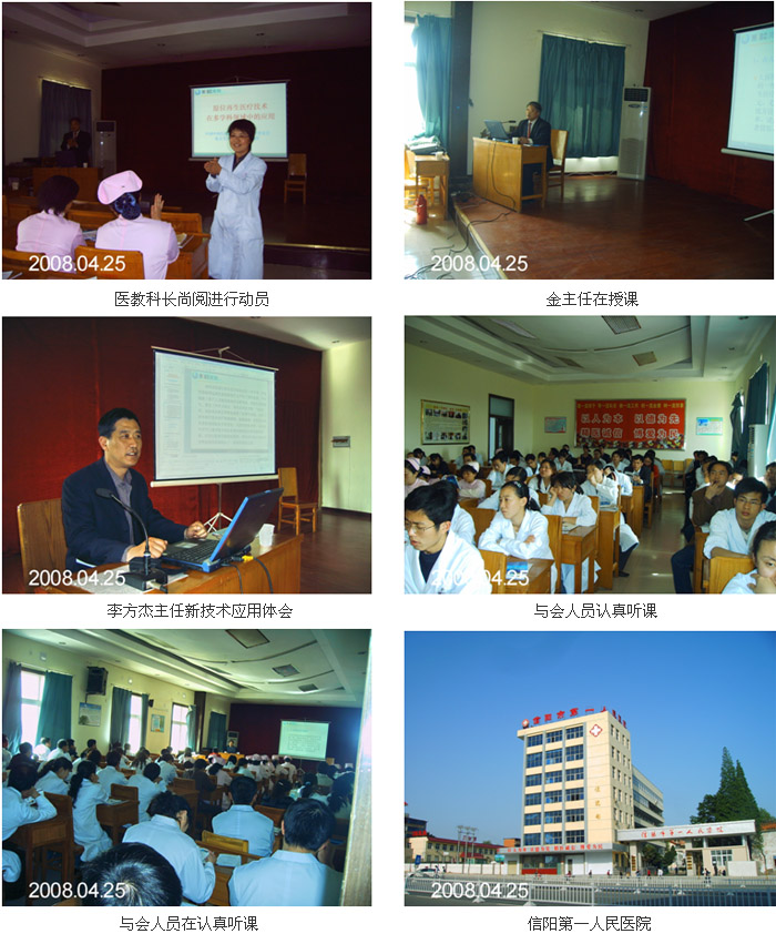2008年4月25日下午2點30分,由中國中西醫(yī)結(jié)合學(xué)會燒傷專業(yè)委員會主辦,信陽市第一人民醫(yī)院承辦的燒傷再生醫(yī)療技術(shù)的診療與護(hù)理培訓(xùn)班在該院會議室舉行,參會人員100余人。信陽市第一人民醫(yī)院是國家二級甲等醫(yī)院,是信陽地區(qū)最早應(yīng)用燒傷皮膚再生醫(yī)療技術(shù)的醫(yī)院。會議首先有醫(yī)教科長尚閱進(jìn)行動員并對對我國著名生命科學(xué)家徐榮祥教授近年來在生命再生科學(xué)、人類組織器官克隆、燒傷再生醫(yī)學(xué)等領(lǐng)域所取得的重大臨床和實驗研究成果給予了高度評價。