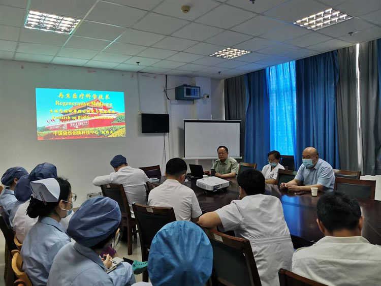 6月20日,《中國(guó)燒傷創(chuàng)瘍雜志》總編、北京榮祥再生醫(yī)學(xué)研究所副所長(zhǎng)、中國(guó)中西醫(yī)結(jié)合學(xué)會(huì)燒傷專業(yè)委員會(huì)秘書(shū)長(zhǎng)、北京市中西醫(yī)結(jié)合學(xué)會(huì)燒傷專業(yè)委員會(huì)副主任委員方進(jìn)勇,應(yīng)邀前往海寧市中心醫(yī)院,為急診科、普外科的醫(yī)護(hù)人員講解應(yīng)用再生醫(yī)療技術(shù)治療燒燙傷及各類慢創(chuàng)。方教授詳細(xì)介紹了在治療燒燙傷及各類慢創(chuàng)病例時(shí)應(yīng)注意的問(wèn)題,以及規(guī)范換藥流程等,得到臨床醫(yī)護(hù)人員一致好評(píng)!