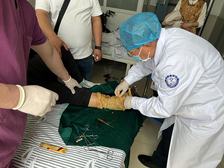 2025年4月23日, 應(yīng)東莞市中西醫(yī)結(jié)合醫(yī)院手外科及東莞市企石醫(yī)院創(chuàng)面修復(fù)科二位主任邀請(qǐng),中國(guó)中西醫(yī)結(jié)合學(xué)會(huì)燒傷專業(yè)委員會(huì)常務(wù)委員、《中國(guó)燒傷創(chuàng)瘍雜志》副總編輯王洪生,來(lái)到上述二家醫(yī)院對(duì)糖足及壓瘡病人會(huì)診指導(dǎo),并給出了治療方案和建議,受到主任及醫(yī)護(hù)人員的認(rèn)可及好評(píng)!