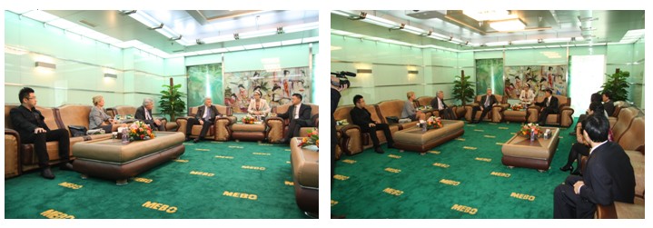 美寶集團(tuán)董事局主席、人體再生復(fù)原科學(xué)的創(chuàng)始人徐榮祥教授,帶領(lǐng)集團(tuán)四位總裁對三位貴賓的來訪表示了熱烈的歡迎。徐榮祥教授向來賓簡單介紹了美寶集團(tuán)的發(fā)展歷史和美寶現(xiàn)狀以及未來規(guī)劃,使三位來賓對美寶的企業(yè)發(fā)展有了更全面的了解。