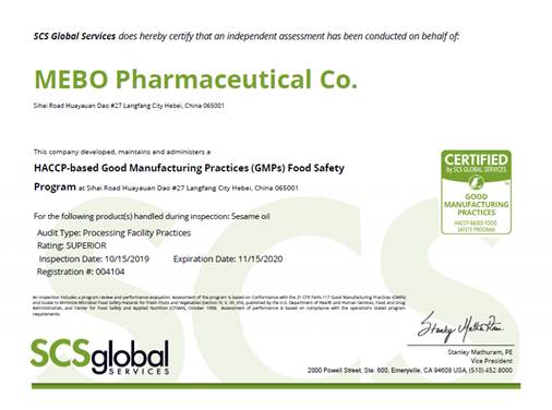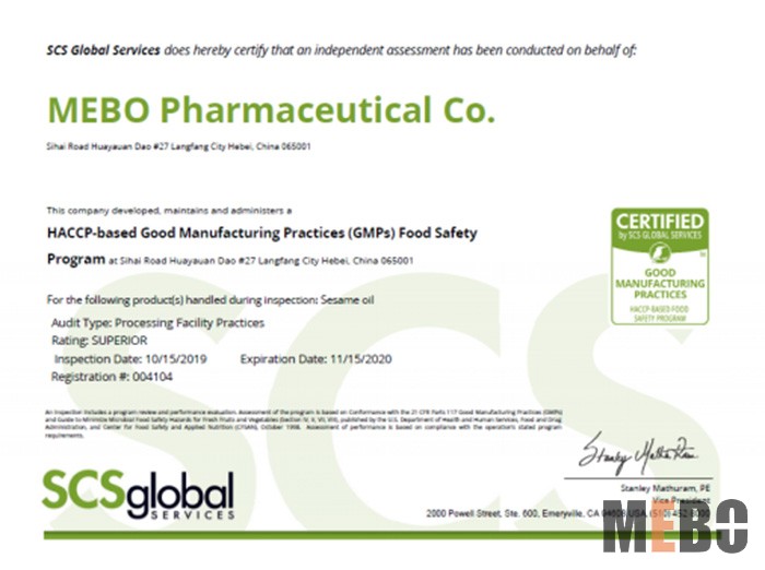 審核的結(jié)果再一次證明,廊坊美寶的芝麻油產(chǎn)品,優(yōu)質(zhì)、安全,值得信賴。廊坊美寶具備了符合國際標(biāo)準(zhǔn)的硬件水平,與世界先進水平接軌的質(zhì)量管理水平和達到國際認可的產(chǎn)品質(zhì)量,廊坊美寶制藥有限責(zé)任公司將在國際化的道路上繼續(xù)奮勇前進。