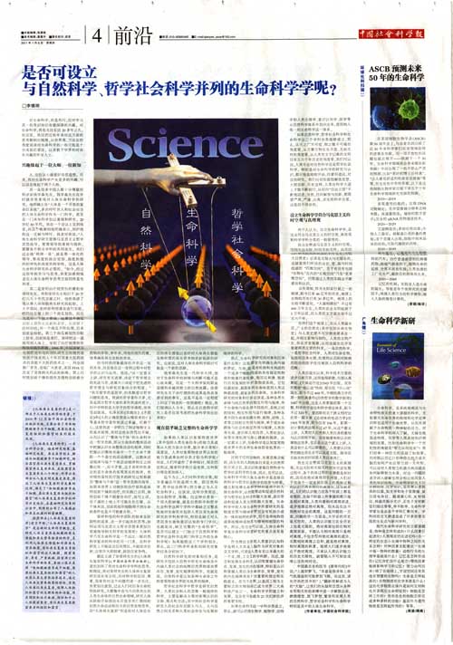 《中國(guó)社會(huì)科學(xué)報(bào)》:是否可設(shè)立與自然科學(xué)、哲學(xué)社會(huì)科學(xué)并列的生命科學(xué)學(xué)呢?