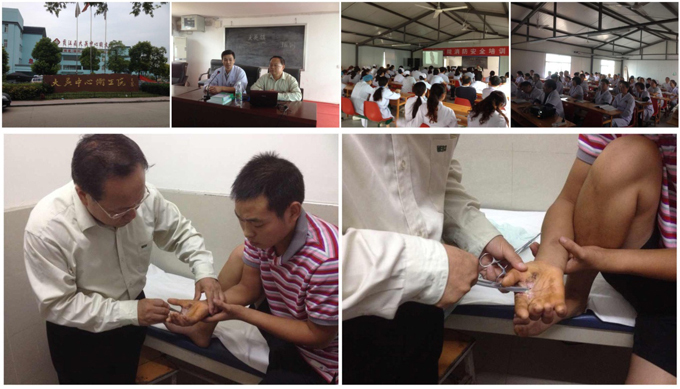2014年9月23日趙瑞慶教授在徐州市大吳鎮(zhèn)中心衛(wèi)生院舉辦了一期院級燒傷創(chuàng)瘍再生醫(yī)學(xué)與療法培訓(xùn)班。李輝院長主持了會議,培訓(xùn)人數(shù)82人。培訓(xùn)后趙教授深入外科病房會診電擊傷病人。