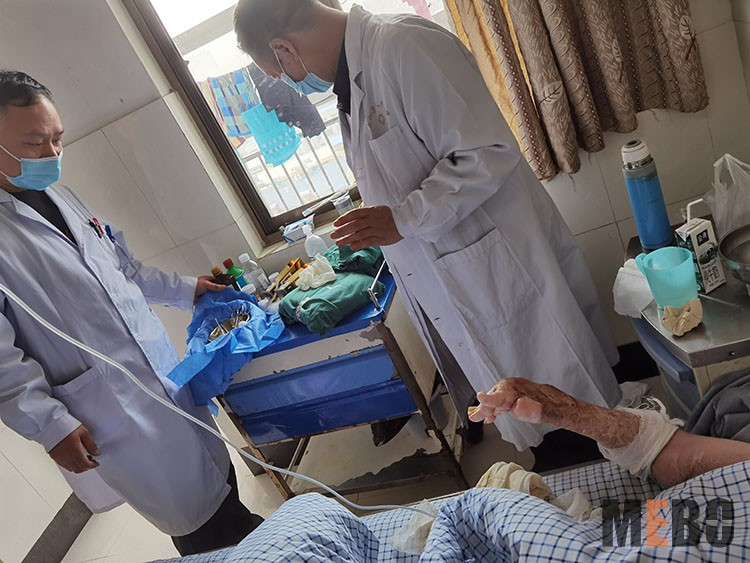 2021年3月31日,聊城市第三人民醫(yī)院的普外科關中正博士以及牛新芳護士長,聯合中國紅十字基金會徐榮祥再生生命公益基金來到聊城地區(qū)進行公益義診,利用再生醫(yī)療技術及其配套產品濕潤燒傷膏為患者清創(chuàng)、換藥。一行人來到聊城市東昌府區(qū)姚堤口村,到曾在聊城市第三人民醫(yī)院救治的一位長期臥床90歲老人的家中,這位患者在住院期間,關中正博士運用再生醫(yī)療技術及濕潤燒傷膏為其進行治療,后期并為其縫合。