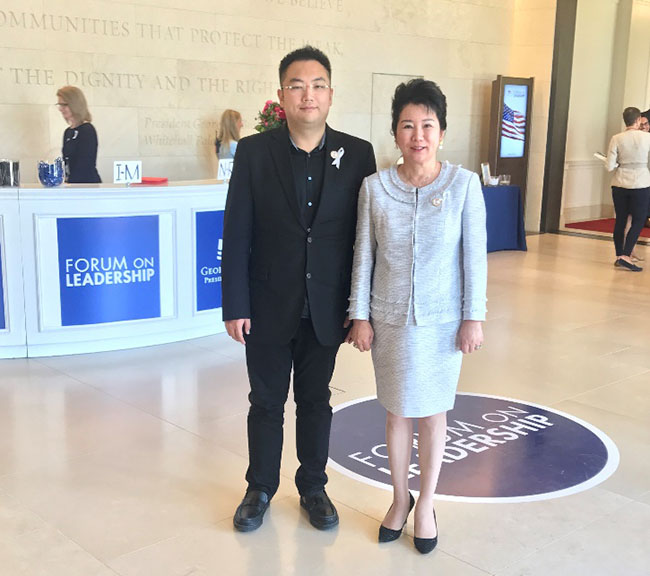 2018年4月18-20日,在美國得克薩斯州達拉斯市喬治•布什總統(tǒng)中心舉行為期三天的領導力論壇系列活動,前總統(tǒng)喬治•布什及其夫人勞拉•布什,前副總統(tǒng)切尼及其夫人、前國務卿賴斯女士、前國會議長博納先生以及亞馬遜創(chuàng)始人CEO貝佐斯先生等重要嘉賓出席本次論壇。應布什總統(tǒng)中心的邀請,美寶集團董事局主席及國際再生醫(yī)學與創(chuàng)面修復學會總裁徐鵬先生、美寶集團董事局副主席及美國徐榮祥基金會主席李俐女士也出席了本次論壇,并作為特別嘉賓出席布什總統(tǒng)及切尼副總統(tǒng)各自主辦的小范圍招待會。本次論壇開幕前一天,喬治•布什總統(tǒng)的母親、美國前第一夫人芭芭拉•布什于17日晚間去世,享年92歲。本次論壇于18日依舊如期舉行,只是來賓胸前都別了一個小白絲帶表示悼念。