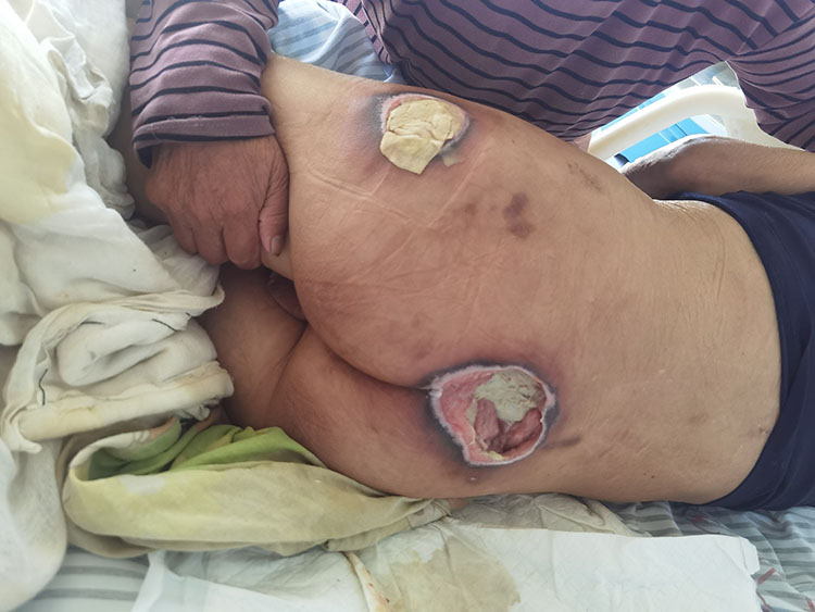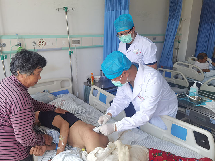 5月25日,應(yīng)江蘇大豐人民醫(yī)院之邀,《中國(guó)燒傷創(chuàng)瘍雜志》常務(wù)編委、燒傷創(chuàng)瘍?cè)偕t(yī)療技術(shù)臨床專家趙瑞慶,在該院會(huì)診了五例慢創(chuàng)病人(糖足潰瘍?nèi)?、壓瘡二例)。其中一例壓瘡較大合併痂下深層組織感染,在討論環(huán)節(jié)分輕重緩急一對(duì)一給岀了治療方案,受到當(dāng)?shù)蒯t(yī)務(wù)人員的稱贊。