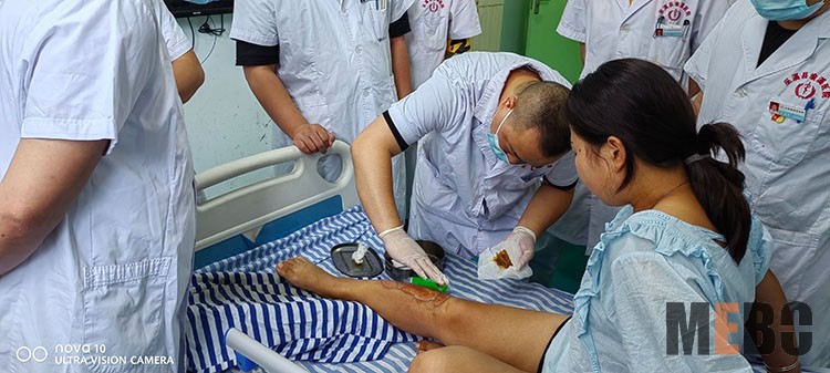 9月21日,湘雅三醫(yī)院彭浩主任邀請北京榮祥再生醫(yī)學(xué)研究所副所長、《中國燒傷創(chuàng)瘍雜志》編委金黨軍到燒傷科會診燒傷患者,金主任親自用再生醫(yī)療技術(shù)為患者換藥,患者家庭經(jīng)濟(jì)困難,于是經(jīng)過商定,向中國紅十字基金會徐榮祥再生生命公益基金申請了捐助。